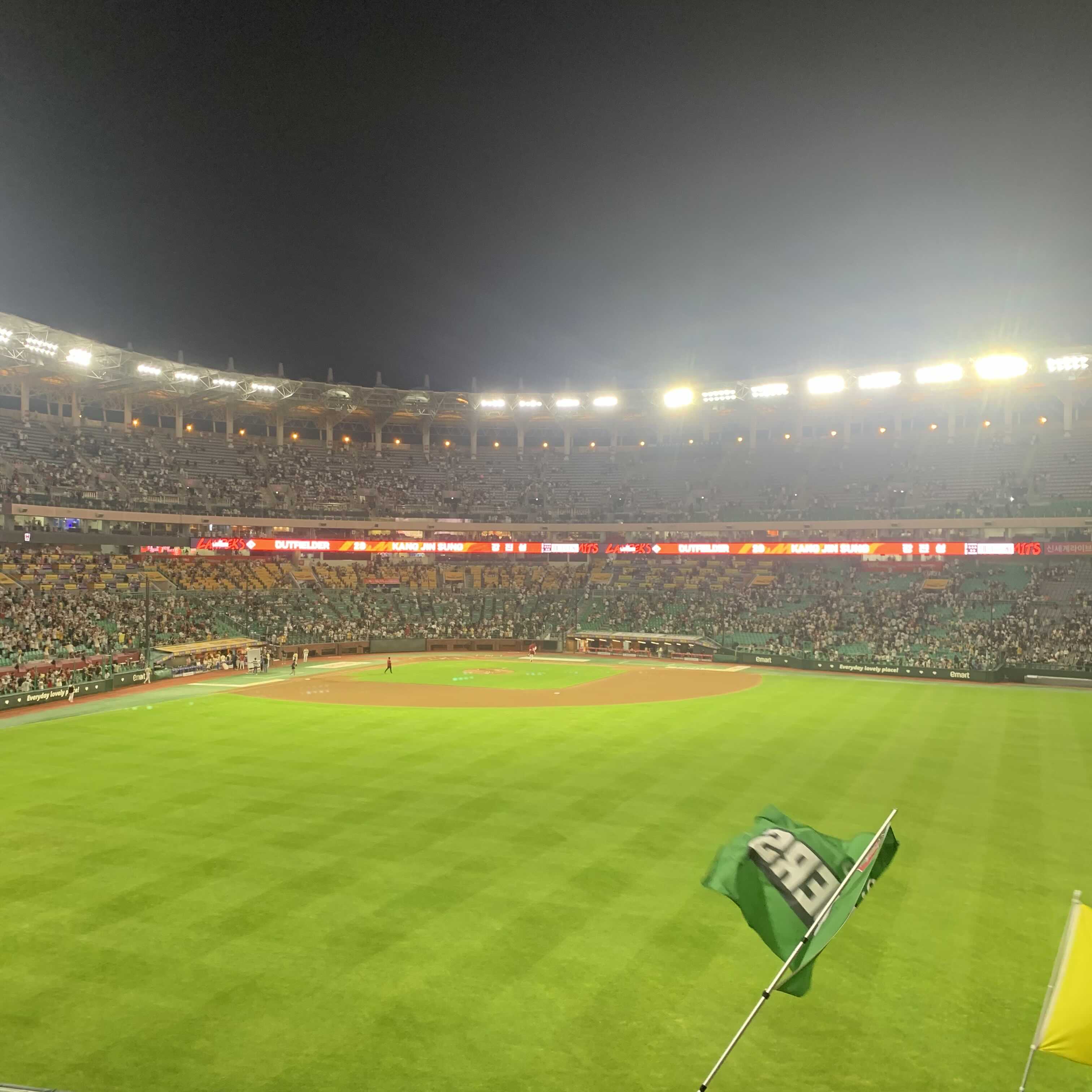 외야의 유일한 단점은 경기의 흐름을 볼 수 있는 전광판을 보기 어렵다는 점입니다.